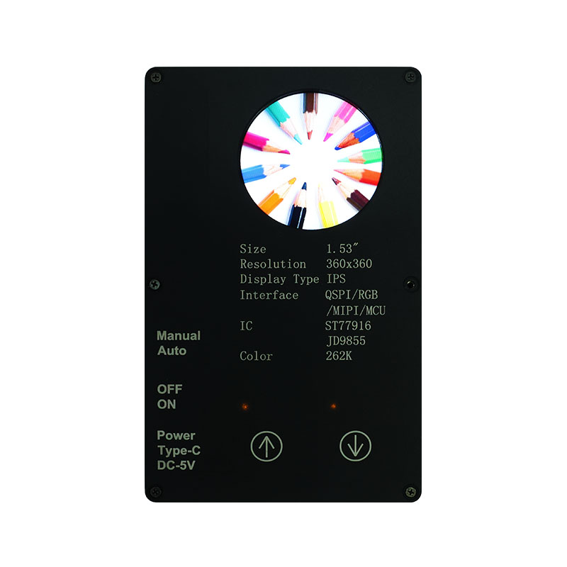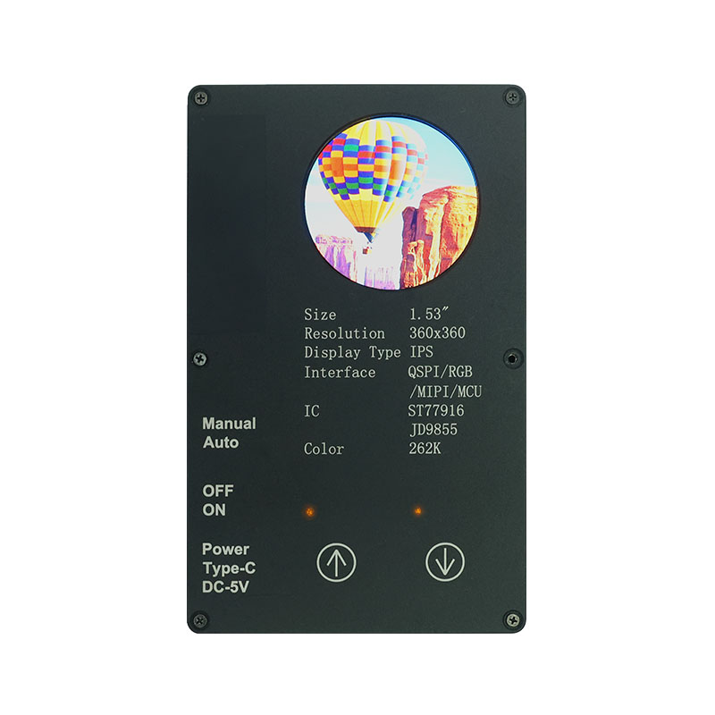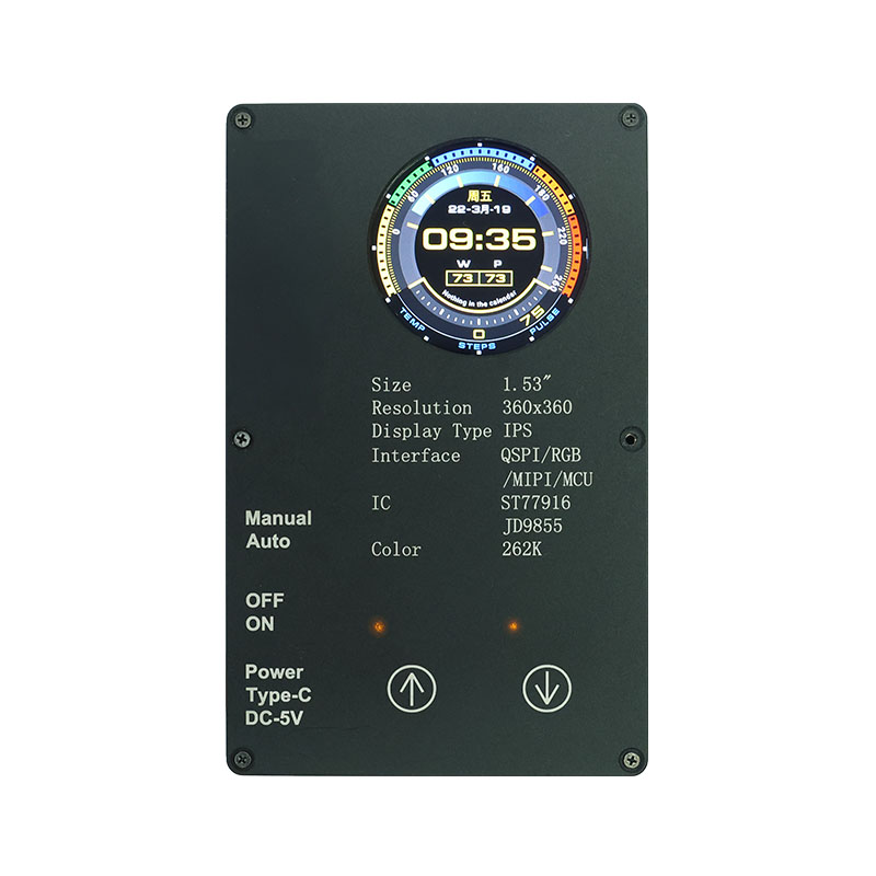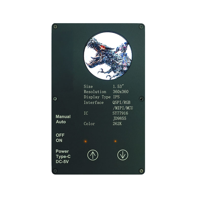 Цей спеціальний дисплей має високу роздільну здатність 360×360, усі кути огляду та високу яскравість 400 кд/м². Завдяки промисловому діапазону робочих температур (-20 ℃ ~ 70 ℃) він забезпечує чітку та стабільну роботу в розумних домашніх програмах, таких як пристрої для видалення кліщів і соковижималки. Інтерфейс QSPI та ST77916 Drive IC забезпечують високу швидкість передачі даних, а його компактний розмір модуля (40,46 × 41,96 × 2,16 мм) максимально ефективно використовує простір.