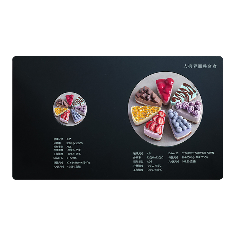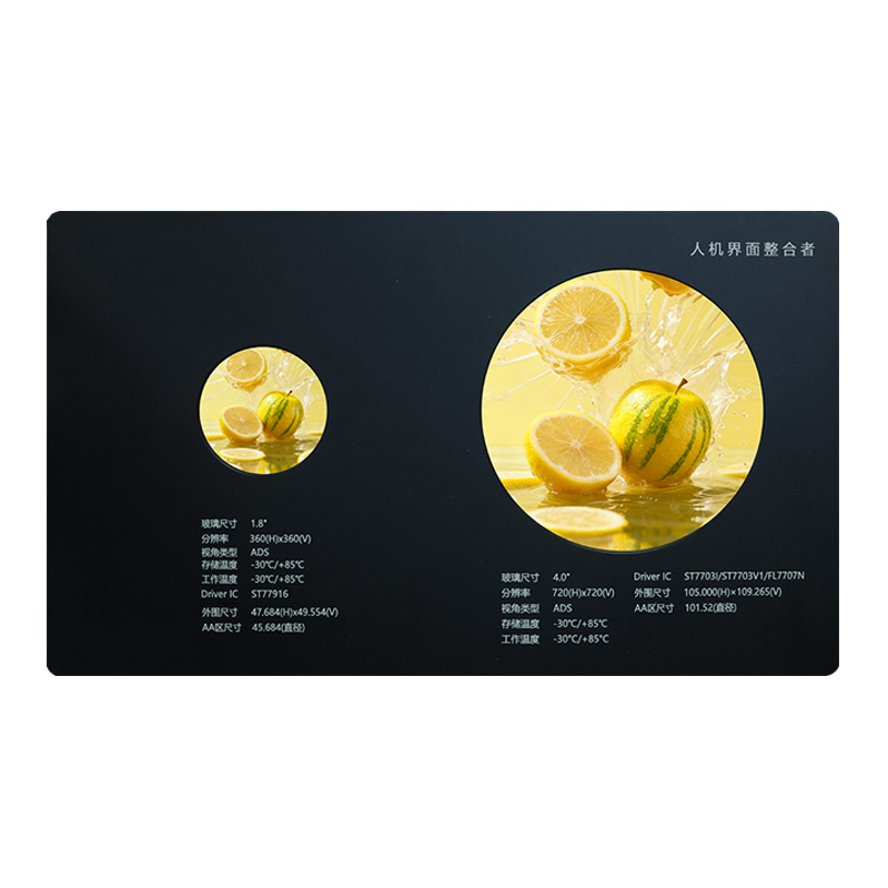 Цей 4,0-дюймовий круглий РК-дисплей TFT розроблено для роботів-домашніх тварин зі штучним інтелектом і автомобільних панелей приладів. Його висока роздільна здатність 720x720 у поєднанні з технологією ADS забезпечує приголомшливе зображення. Стійкий до екстремальних температур (від -30 ℃ до +85 ℃) і пропонуючи кілька варіантів драйвера IC, він демонструє чудову гнучкість налаштування дисплея. Велика кругла зона AA розміром 101,52 мм забезпечує інтуїтивно зрозуміле відображення інформації. Цей високопродуктивний РК-дисплей є ідеальним рішенням для підвищення привабливості взаємодії людини з машиною.