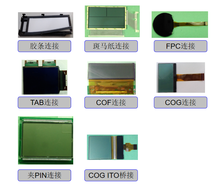 Крім того, не менш важливим є спосіб підключення. Від традиційних зебра-смужок/еластомерних з’єднань до більш просунутих з’єднань FPC, TAB і COF, ми можемо вибрати оптимальне рішення для електричного з’єднання, коли ви налаштовуєте компоненти РК-екрану відповідно до ваших вимог щодо передачі сигналу та просторового розташування.