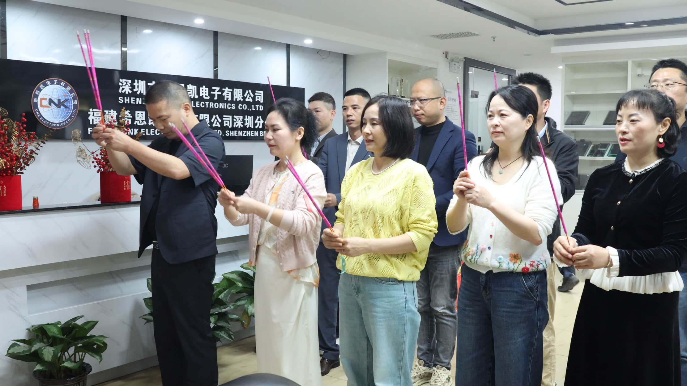 На світанку топ-менеджмент компанії зібрався разом і очолив усіх співробітників для проведення урочистої церемонії відкриття. Над партами піднімався дим ладану, і приношень було багато. Це не лише виражало наше благоговіння перед небом і землею, але й щиросердечно побажало всім працівникам процвітаючого року зі сприятливою погодою та успішною роботою. Серед кадіння лідери кадили з великою відданістю, молячись про благословення та удачу для великих планів компанії в новому році.