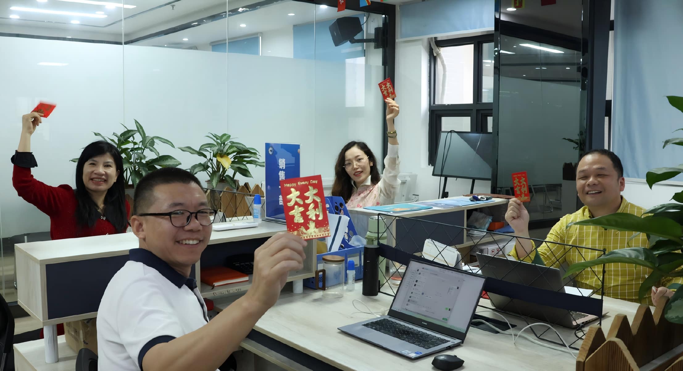 Після жвавої церемонії настала найщасливіша мить для працівників – роздача новорічних стартових червоних конвертів! Лідери один за одним роздавали червоні конверти, наповнені благословеннями та удачі, особисто доставленими кожному співробітнику, який повернувся. Це було вітання компанії з Новим роком для всіх, а також це була мотивація для того, щоб заохочувати всіх повертатися до роботи та вступати в нову битву! Після отримання червоних конвертів на обличчях сяяли яскраві посмішки, а атмосфера на сцені була теплою та затишною.