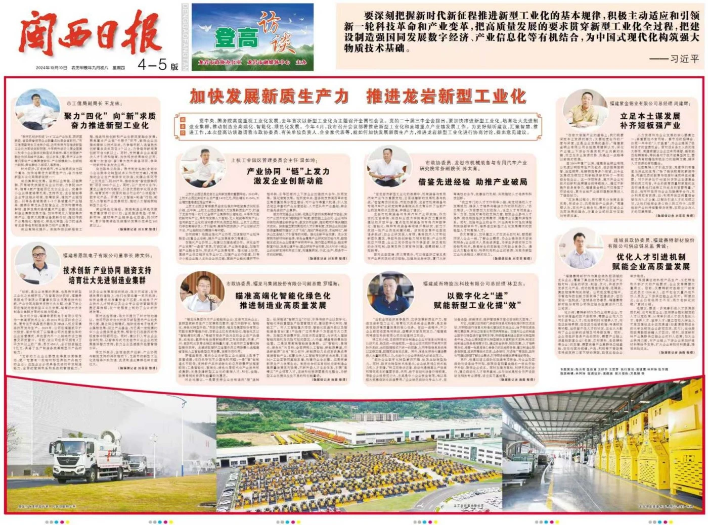 У інтерв'ю з висотою, проведеної Minxi Daily з темою "прискорення розвитку продуктивності нової якості та просування нової індустріалізації в Лонг'яні", Чен Венхуай, голова Fujian Cnk Electronics Co., Ltd., підняв три основні теми: Технологічні інновації, промислова координація та підтримка фінансування та поділилися своїми практиками та дослідженнями щодо того, як розвивати та розширювати передові виробничі кластери.
